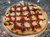 Vodka sauce topped with fresh mozzarella and parmesan cheese.
