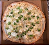 Roasted peppers, mushrooms, spinach & fresh mozzarella in a white wine sauce.